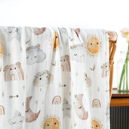 Pour un nouveau-né, une couverture d'environ 70x70 cm est idéale. Pour un bébé plus grand ou pour un usage plus polyvalent, préférez les formats 100x75 cm ou 120x110 cm comme notre modèle Soleilla™.